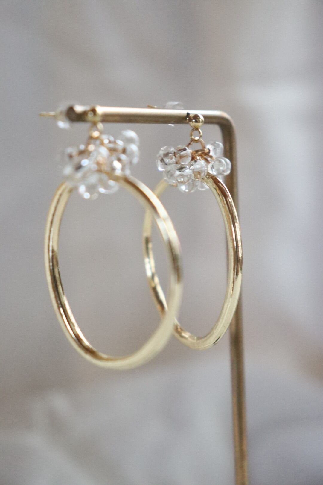 存在感あるLarge_Tsubu。粒と大ぶりフープが合わさる事で華やかさと洗練さを兼ね備え、特別な瞬間を引き立てます。どんなシーンでもあなたの個性を際立たせ、心をときめかせるような美しいアクセサリーに。